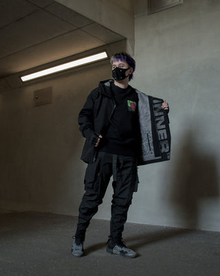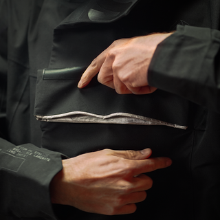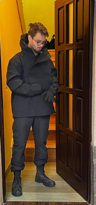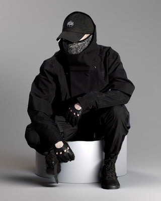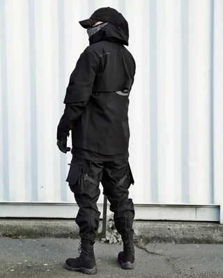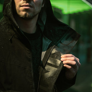 JACKET_1 not only defends the wearer from the elements, but also includes an array of passive technologies shielding the wearer from unwanted surveillance.