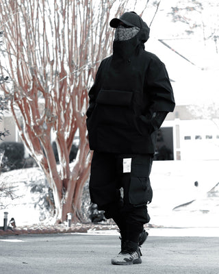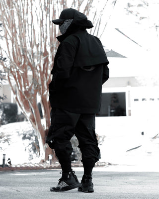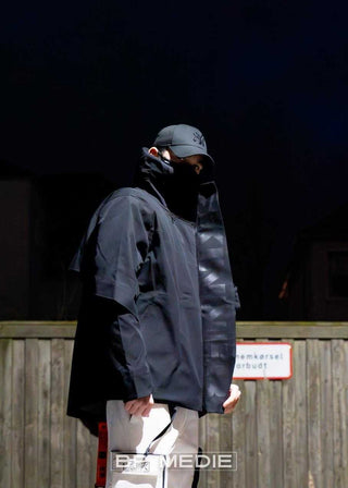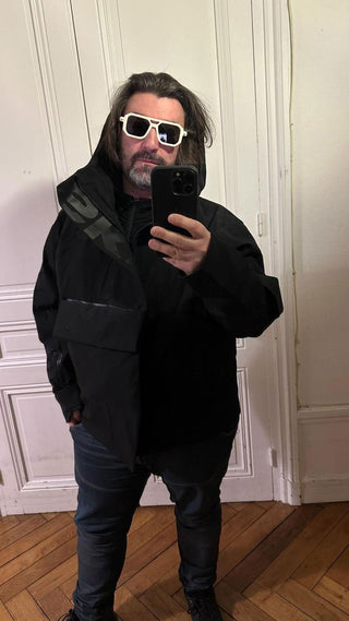 JACKET_1 is specifically designed to be oversized; providing a loose and comfortable fit. The fit is specifically designed to disguise the wearer's silhouette, providing them with a more relaxed and casual appearance in all environments. JACKET_1’s generous cut also provides the wearer with extra room to layer their clothing, making it suitable for a range of temperatures and styles.
